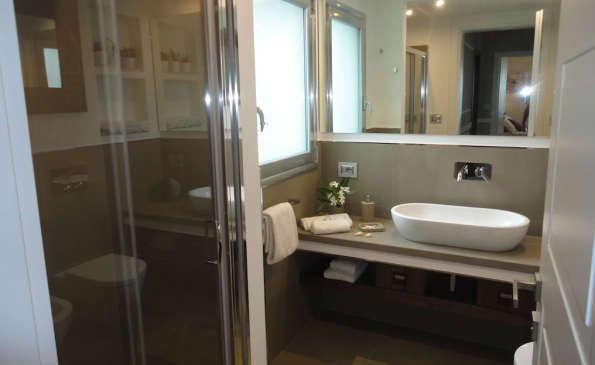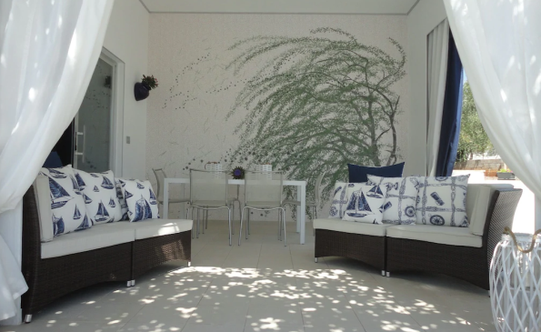 Splendid detached villa with swimming pool and spectacular sea views, surrounded by olive trees, on a plot of approx 1800 sq.m.. totally fenced. The Ville, just renovated, it is equipped with every comfort. Automatic gate, air-conditioned environments, satellite tv, wi-fi, alarm system, dishwasher, washing machine, outdoor shower with hot water, large terraced areas, mail car, barbecue. E’ composed of a beautiful eat-in kitchen directly overlooking the equipped patio, double bedroom with private bathroom and access to the bedroom with bunk bed ideal for hosting two children, second double bedroom, and bedroom with two single beds that can be joined together, second full bathroom with shower.